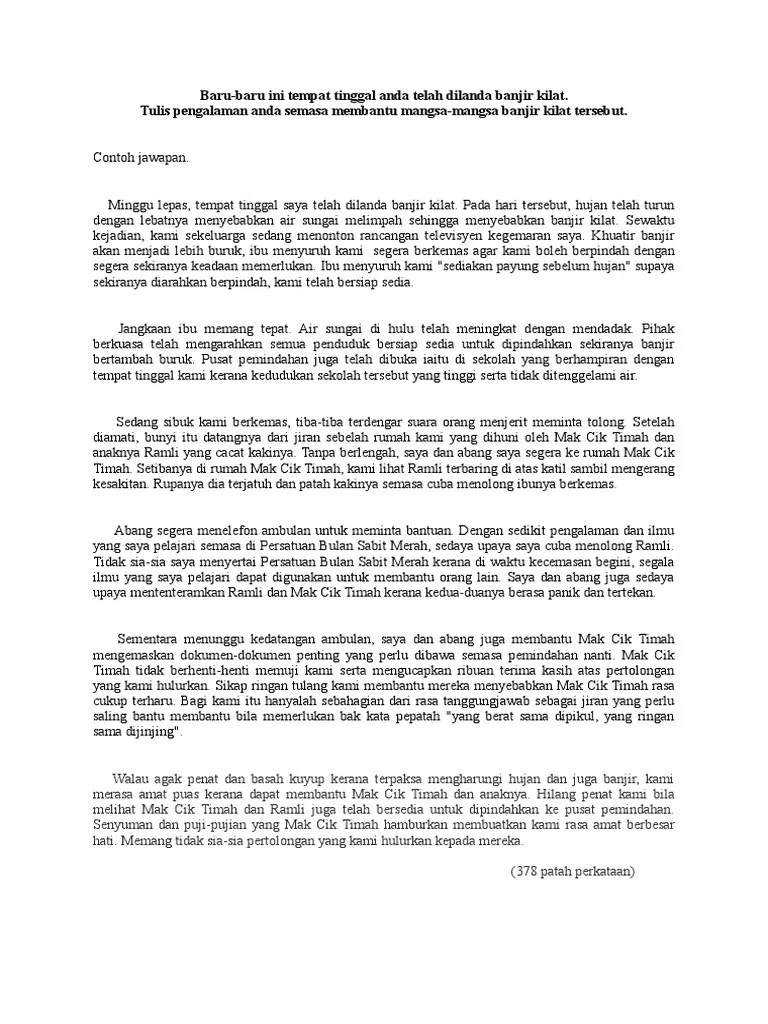 Beberapa kawasan telah dinaiki air . Contoh contoh karangan sekolah rendah: Kejadian banjir telah berlaku di tempat tinggal kamu. Tips penting karangan berita pt3.